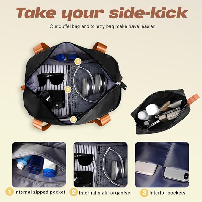 - 【Carry On Luggage】The luggage set consists of a 20inch carry-on suitcase(14.6*8.46*22.6 inches, 40L), a travel duffel bag(20.47*7.87*12.99IN), and a toiletry bag(8.97*5.51*5.90IN). You can place your clothes, some carry-on items in the bag for your traveling convenience. The travel duffel bag can be placed on the luggage to increase the space utilization of the luggage.