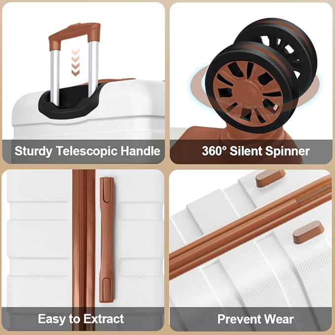 AnyZip Luggage Set 20 Inch Carry on Luggage PC ABS Hardshell Lightweight Suitcases for Travelling with 4 Universal Wheels TSA Lock White Brown