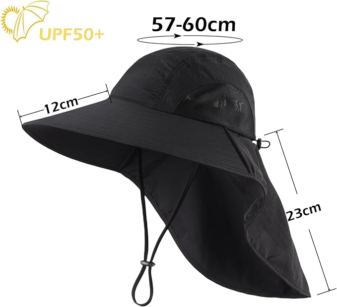 • Unisex-adult spf hat: 4.72”/12cm wide brim and 9.05”/23cm neck flap, providing comprehensive UV protection for skin such as forehead, cheeks, nose, effectively blocking UV rays by 99% or more; sunhats with uv protection, UPF50+