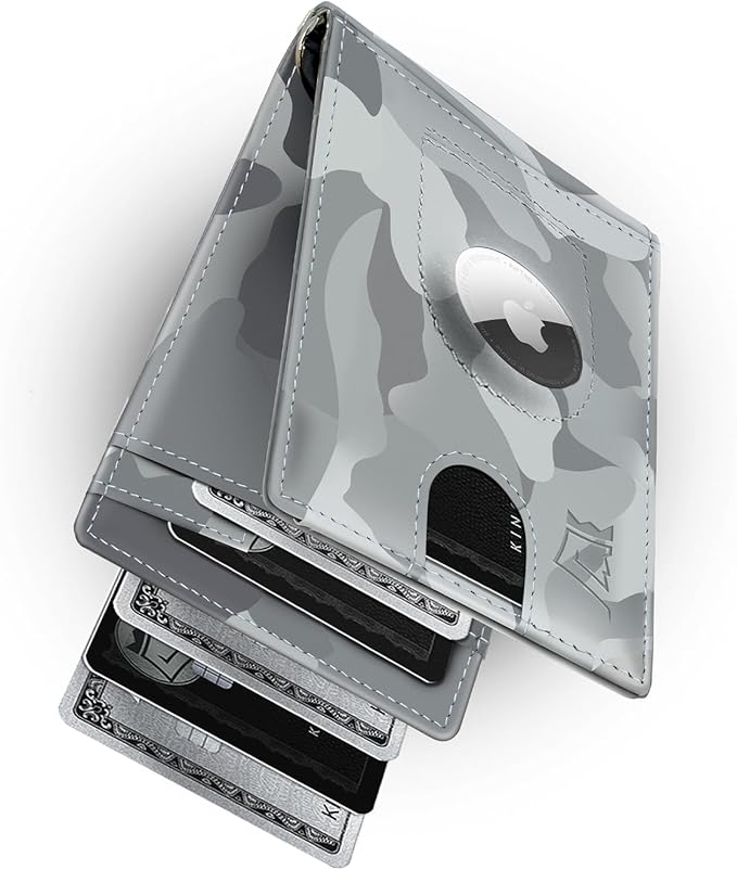- Wallet Airtag Holder: Features a dedicated slot or pocket specifically designed to securely hold an Apple AirTag, allowing you to easily track your Kings Loot wallet using your iPhone. AirTag Not Included.