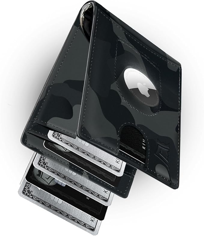 - Wallet Airtag Holder: Features a dedicated slot or pocket specifically designed to securely hold an Apple AirTag, allowing you to easily track your Kings Loot wallet using your iPhone. AirTag Not Included.