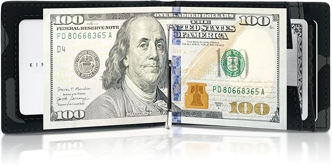 - Sleek & Accessible Design: This leather mens wallet with a money clip features a front thumb slide and a pull tab to conveniently access your most used cards. Measures 3" x 3.75" x .35" inches. Equipped with RFID blocking technology to protect your credit cards and personal information from electronic pickpocketing.