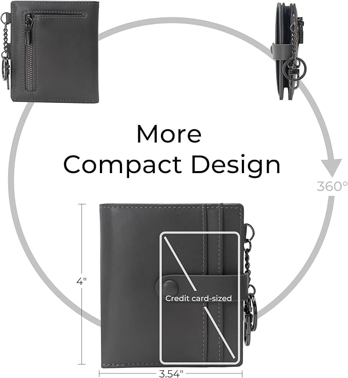 - Versatile Storage: Features a zipper coin pocket, ID window, and 8 card slots to keep your essentials organized and accessible. Includes a durable keychain for added convenience.