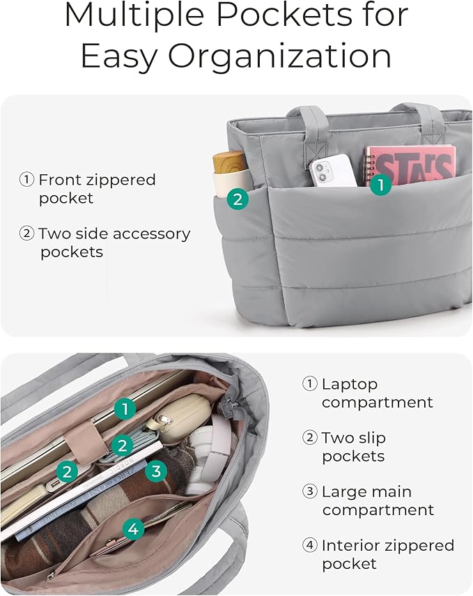 BAGSMART Tote Bag for Women, Lightweight Puffy Tote Bag with Compartments Shoulder Bag Handbag for Travel, Work, Gym