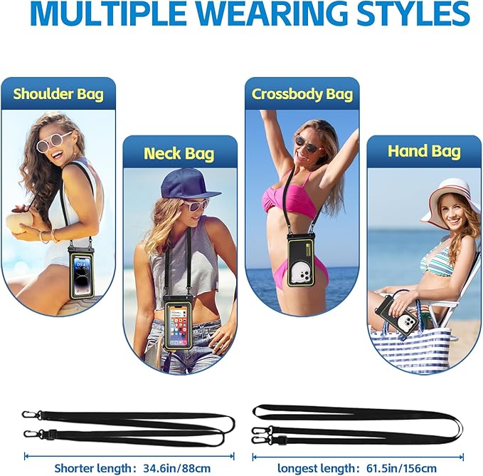 - Double Hook & Adjustable Lanyard & Cute Back: Our waterproof bag features two sturdy hooks for added security and an adjustable lanyard that can be worn comfortably around your neck, across your body, or over your shoulder. The lanyard also helps prevent accidental drops and can be tightened to keep the bag close to your body while in the water. You can capture stunning photos by this waterproof bags with this cute back design, curated to keep your pictures brilliantly beautiful