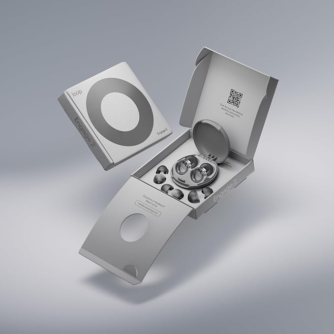 - IN THE BOX – 1 set of Loop Engage 2 earplugs, 4 sets of silicone ear tips (sizes XS + S + M + L), 1 portable and convenient keychain Carry Case.