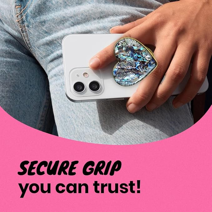 OnTheGrip Cute Natural Seashell Design Heart Shape Collapsible Mobile Phone Grip Stand Holder for Smartphone Tablet Cell Phone Accessory (Black Fresh Water)