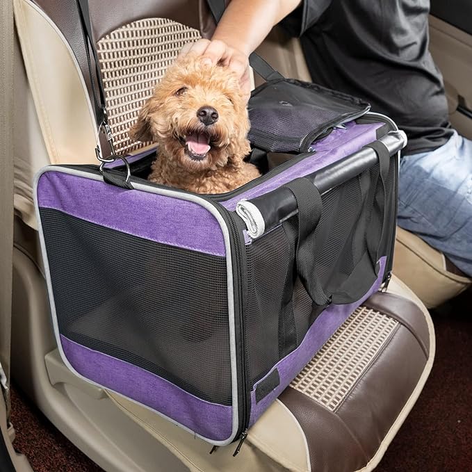 Carrying Bag for Yorkie Dog Travel Kennel Ventilated Softside Pet Carrier Tiny Dog Crate for Teacup Poodle 12lb Large Kitty Transport Cage with Cover Chihuahua Supply Purple