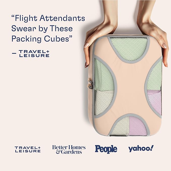 Shacke Premium 5 Packing Cubes Set - Lightweight Mesh Travel Luggage Organizers with Laundry Bag, 5-Piece Suitcase Storage System (Nude Beige)