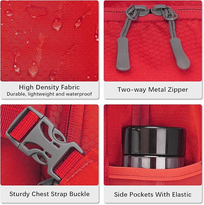 - 【 Durable and Protective Performance 】:The hiking bag features High-Density Nylon fabric and a Built-in Rain Cover - ideal for rainy activities. The reflective strips keep you visible in low-light conditions. The surface is waterproof, even in light rain, it can ensure that the contents of the bag dry. The bottom adopts a thickened wear-resistant material, which enhances the durability of the backpack when in contact with the ground.
