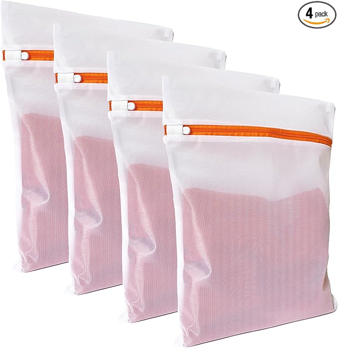 4 Pack Mesh Laundry Bags for Delicates 12inx16in (30cmx40cm), Dryer Safe, Breathable Fine Net, Sturdy Anti-Rust Zipper, Mesh Laundry Bags for Lingerie, Bra, Underwear, Sneakers, Socks, Laundry Club™