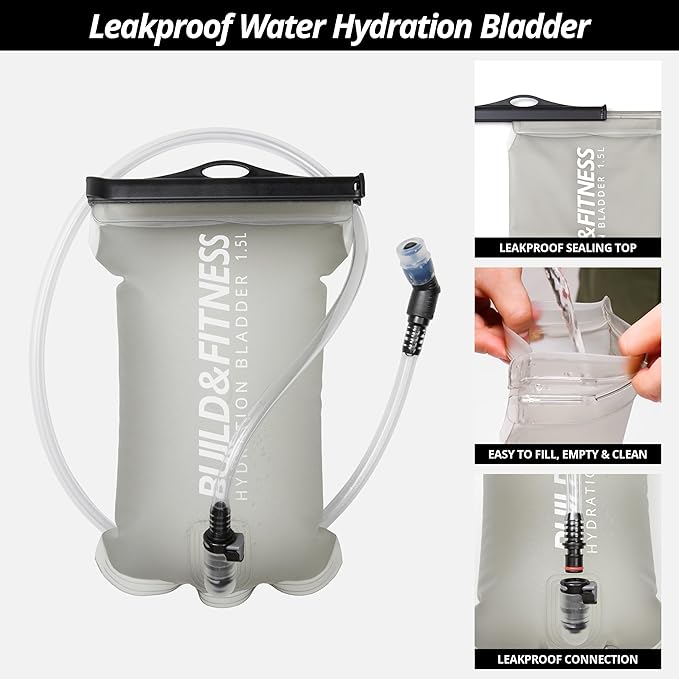 - COMFORTABLE AND LIGHTWEIGHT – The Build & Fitness hydration vest is made from lightweight, breathable, quick-drying polyester, mesh, and neoprene. With a soft black outer and weatherproof neoprene inner lining, it's practical, stylish, and designed to hug your body for maximum comfort.