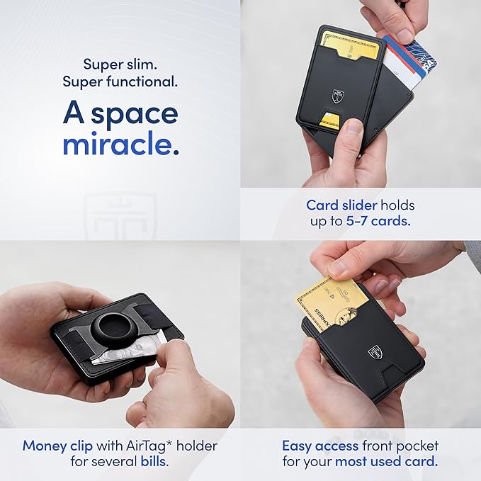 - ๐๐๐ฅ ๐ง๐๐ ๐ช๐๐๐๐๐ง โ put your AirTag* Accessories into the pocket and find your AirTag * smart wallet anywhere. (๐๐ถ๐ฟ๐ง๐ฎ๐ด* ๐ถ๐ ๐ป๐ผ๐ ๐ถ๐ป๐ฐ๐น๐๐ฑ๐ฒ๐ฑ)