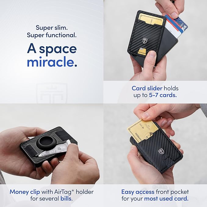 - ๐๐๐๐๐๐๐๐ ๐๐๐๐๐๐ ๐๐ ๐๐๐๐ ๐๐๐๐๐ - The patented SWYPE mechanism of this men's wallet pops out your cards with only one movement, enabling you to see all your cards at a glance and find your needed card instantly. The attached premium carbon leather front pocket of this wallet allows you to push out the most-used card quickly. No more fumbling around!