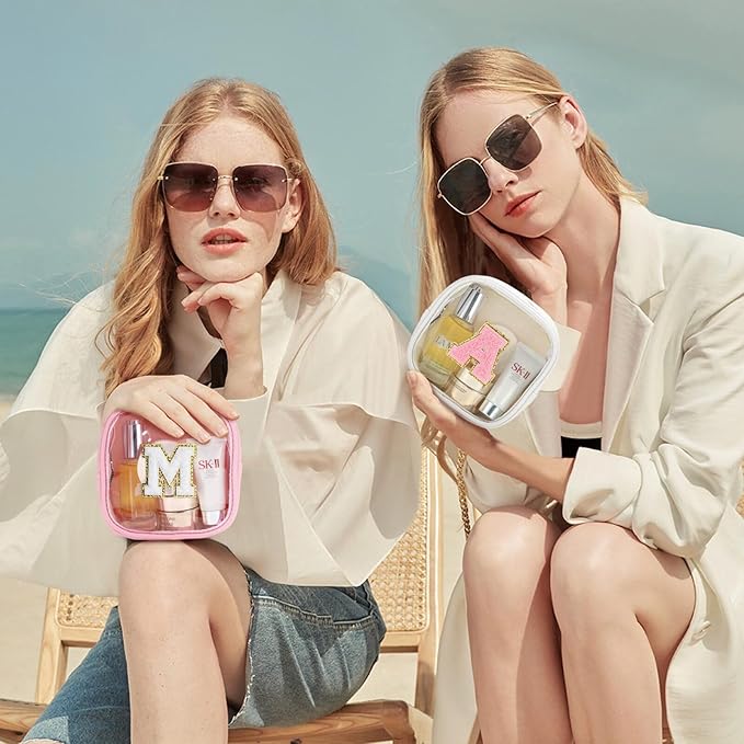 YOOLIFE Initial Make Up Bag Travel Toiletry Bag, Clear Makeup Bag Preppy Cosmetic Bags Organizer Travel Essentials Gifts for Women Teen Girlfriend Teacher Mom Birthday Mothers Day Gifts