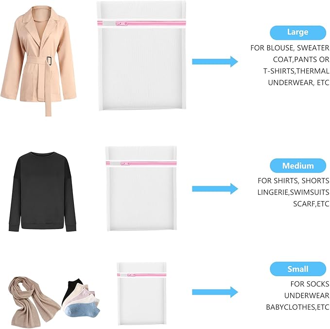 - 【Higher Quality】Made of long-lasting polypropylene nylon, these mesh laundry bags ensure that detergent and water flow easily through for optimal cleaning. The zipper has a locking feature so you don’t have to worry about it opening during use, making these delicate laundry bags perfect for lingerie bags for washing delicates, sweaters, knits, bras, underwear, activewear, and toddlers' clothes