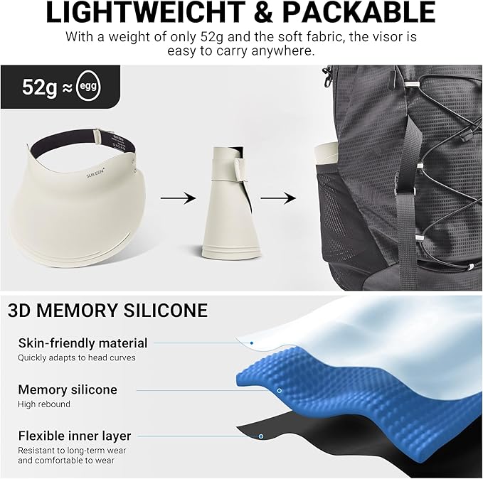 Sukeen Wide Brim Sun Visor Hat for Women Men,UPF50+ Seamless Sun Hats Foldable Ponytail Beach Hats for Daily Outdoor Sport