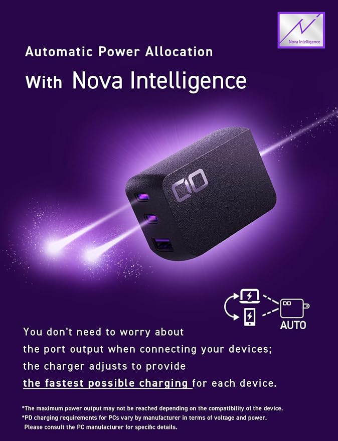 - High-Speed USB-C Charger with GaN: This 65W GaN USB-C charger block supports fast, efficient charging for laptops, tablets, and phones. Nova Intelligence adjusts power per device for ideal charging, making it the best choice for travel and daily use.