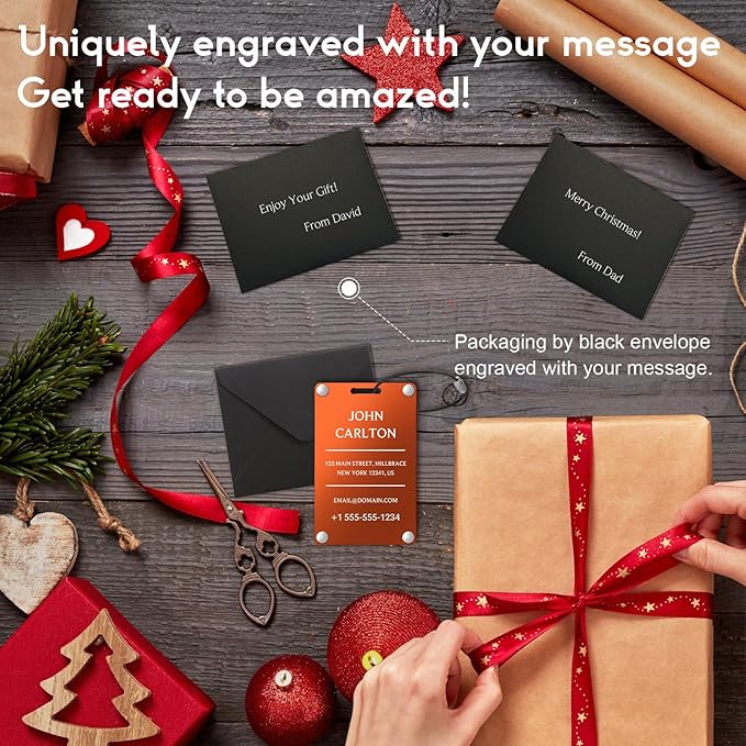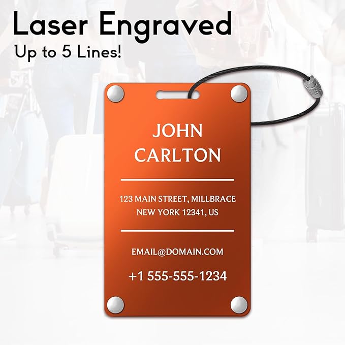 Personalized Luggage Tags for Suitcases - Aluminum Custom Luggage Tags for Backpacks & Bags, Sturdy, Waterproof & Heavy Duty (Orange/Card-Sized)