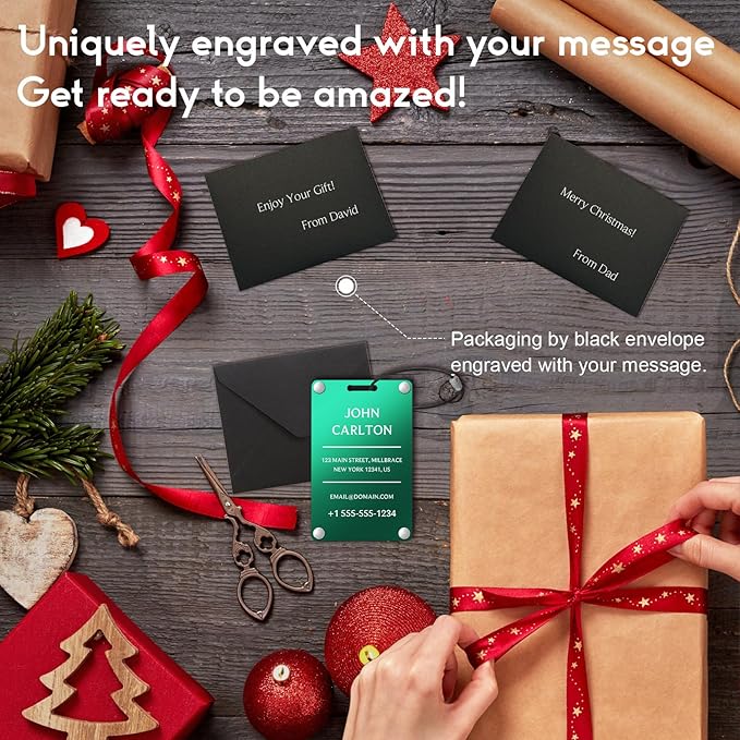 Personalized Luggage Tags for Suitcases - Aluminum Custom Luggage Tags for Backpacks & Bags, Sturdy, Waterproof & Heavy Duty (Green/Card-Sized)