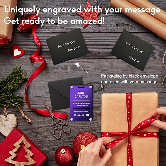 - DURABLE METAL LUGGAGE TAGS: Made from heavy-duty, dual-layered aluminum alloy, designed for extended durability.