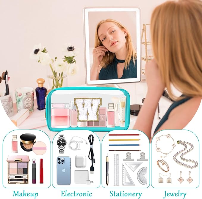 - 【Chenille Letter Patch Bag】Preppy initial makeup bag with professionally sewn chenille letter patches. You don't have to worry about them falling off. With its waterproof nylon & PVC design and unique glitter A-Z initials, it will surely stand out from all your makeup bags, brighten your mood and highlight your personality.