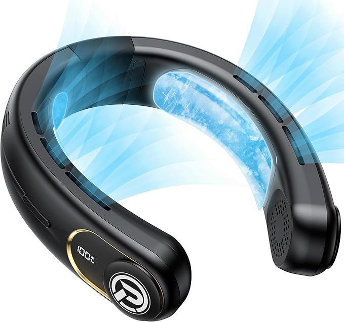 PANERGY Portable Neck Fan Air Conditioner, Rechargeable Battery Operated Personal Fan, LED Display, Hands Free Cooling Neck Fan for Women Men Travel Work Outdoor