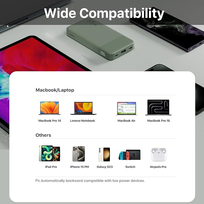 - 【Wide Compatibility】Nobis portable chargers fit every device, including smartphones, tablets, cameras, headphones, earbuds, smartwatches, Kindles, small drones, iWatches, USB lights, USB fans, heated vests, heated jackets, electric lighters, and more