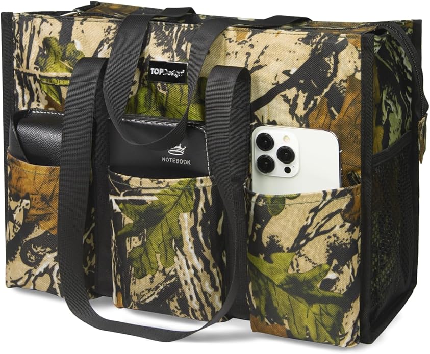 TOPDesign Utility Water Resistant Tote Bag with 13 Pockets, Top Zipper Closure & Thick Bottom Support, for Working Women
