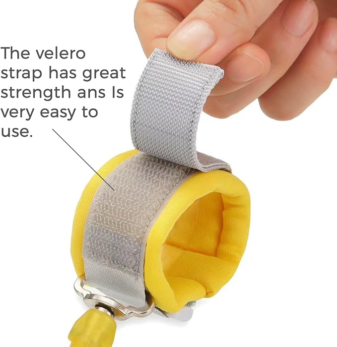 - High Quality Material: PandaEar toddler leash boasts a breathable cloth harness and durable nylon rope. The wrist link is made of secure stainless-steel wire and sturdy PU material, ensuring durability and safety. The wristband features ultra-soft sponge padding for comfort and protection against scratches and sweat