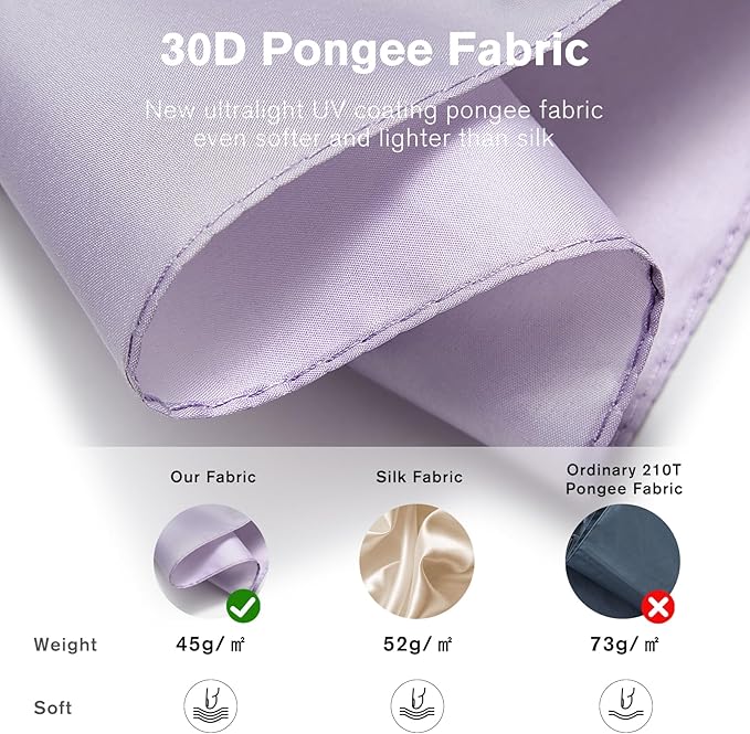 - UPF 50+ Sun & UV Protection: Made with 30D ultra-thin pongee fabric enhanced with a UV-blocking oil coating, this canopy effectively blocks harmful UVA and UVB rays. The fabric is soft and lightweight, offering reliable everyday sun protection without adding bulk. Ideal for daily commuting, shopping, and travel. Lightweight yet protective