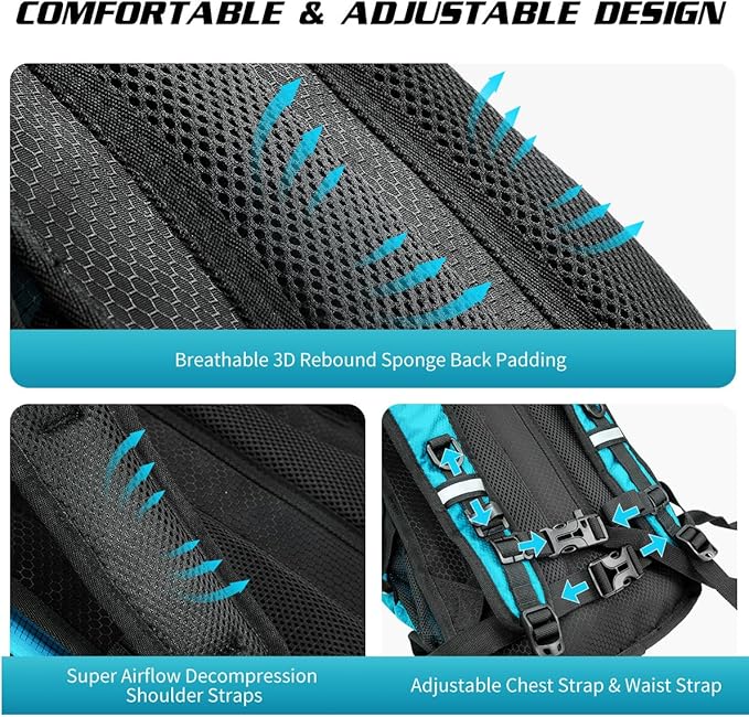 - HIKING/RUNNING/CYCLING/SKIING WITH EASE: This 1.7 pound lightweight hydration backpack features a ultra-elastic 3D breathable padded back and adjustable chest, waist straps for comfort and stability, and is ergonomically designed to fit all sizes. Ideal for hiking, running, cycling, skiing, its chic look is perfect for music festivals.