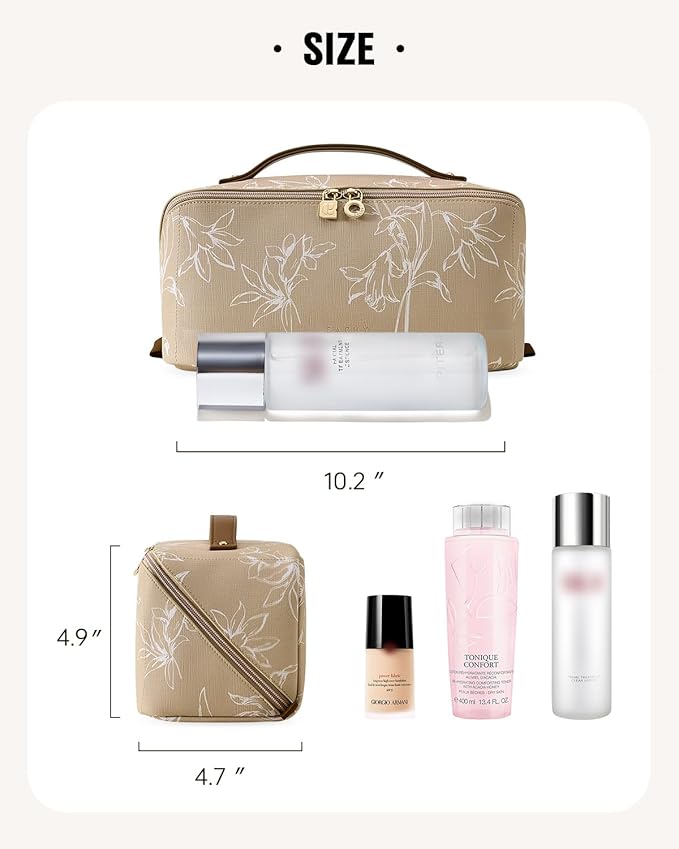 - Spacious Design: This 10.2 x 4.7 x 4.9-inch makeup bag includes inner pockets, providing organized storage for cosmetics and toiletries.