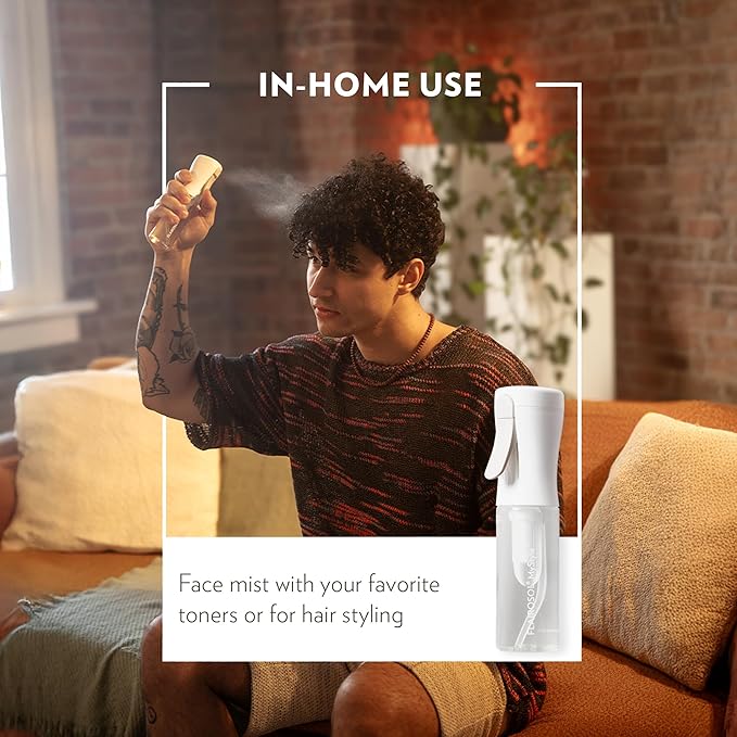 - Continuous Fine Mist Spray: The continuous spray bottle utilizes advanced pre-compression technology and a Dutch-patent atomization nozzle to deliver a continuous & 0.2 mm ultra-fine mist - gentle and even spray perfect for beauty routines, salons, or everyday skincare hydration. Whether you’re at home, at work, or on the go, this water spray bottle ensures a refreshing boost whenever you need it