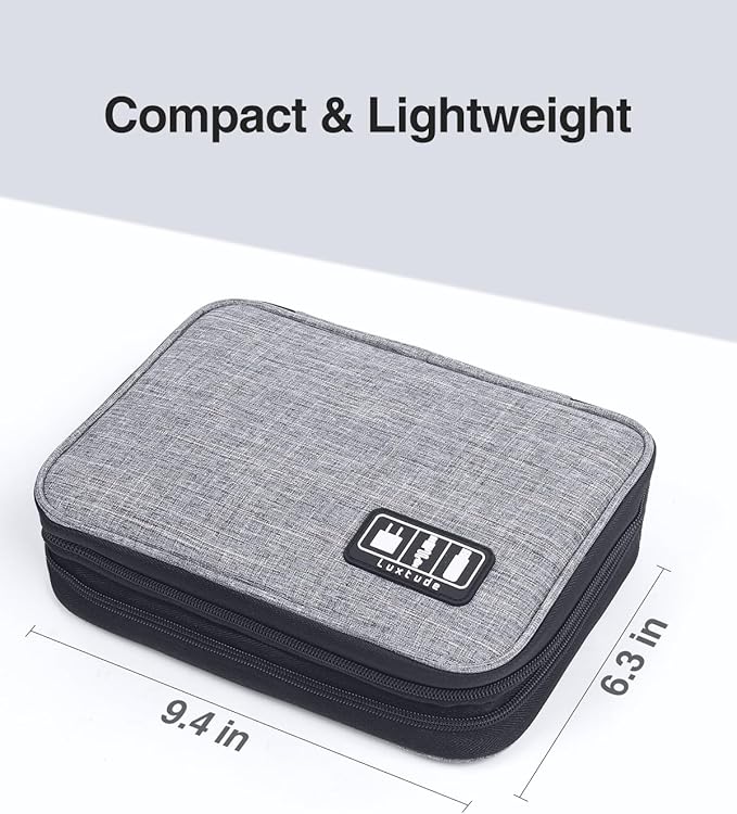 Luxtude Electronics Organizer, Portable Cable Organizer Bag for iPad 7.9'', Double Layer Travel Tech Bag&Cord Storage, Compact Cord Case&Charger Pouch,Electronics Carring Case for Phone/USB