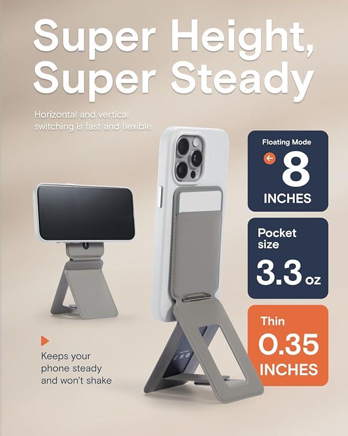 - Foldaway On-the-Go Companion: With a thickness of only 0.35" and weighing just 3.4oz, this magsafe wallet fits in your palm and pocket without adding bulk. It’s the perfect on-the-go companion, allowing you to access all its features wherever you are. Additionally, it can be used as a stand for the iPhone’s Standby mode on any surface. MOFT phone holder available in stylish 5 colors, it complements any style or outfit.