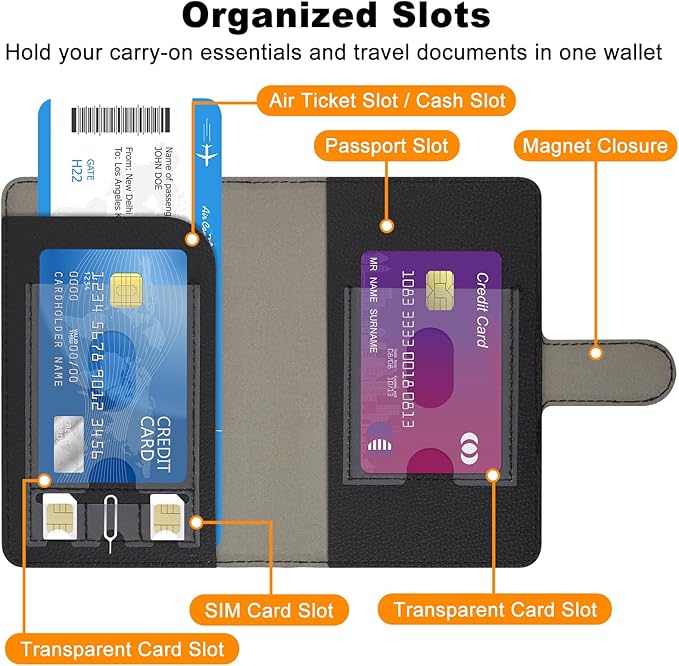- Pocket Design: Our Practical Slots allow you hold passport, credit cards, business cards & boarding passes sufficiently. This passport cover allows you conveniently access to information during boarding and transit. It is ideal for traveling or business trips.