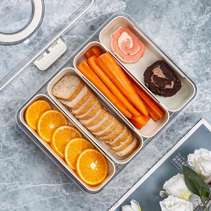 - Functional Design: Featuring a 4-grid layout, easy access and secure transportation of different snacks without mixing flavors.