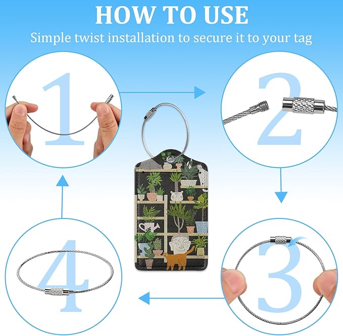 - REUSABLE MATERIAL: The Bookshelf Cat Plant luggage tags for suitcases are made of aluminum alloy material,rust resistance,durable to use.With 211 stainless steel wire rope,can rotate open,not easy to fade and break,very convenient to attach on your luggage.