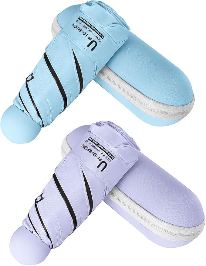 BAODINI Travel Essentials Mini Umbrella for Purse With Case Small Compact UV Sun Protection Lightweight Tiny Pocket Manual Open Close Umbrella for Women Kids and Men Fit Purse Backpack