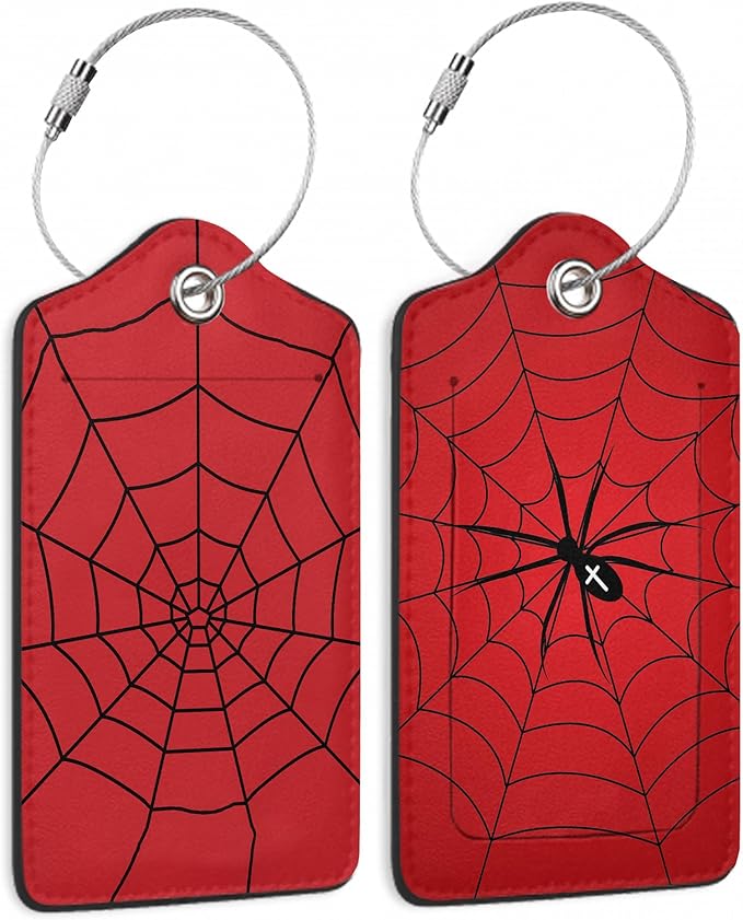 Halloween Red Spider Web Luggage Tags, 2 Pack Travel Cruise Tags for Suitcases,Cute Identifiers with Privacy Flap, Baggage Tags for Women Men Kids Backpack Handbag