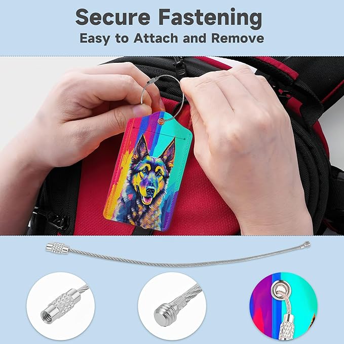 2 Pack Luggage Tag for Suitcase,Art German Shepherd Dog Leather Bag Tags Identifiers Privacy Cover ID Label with Durable Steel Loop for Women Men Kids Girls Travel