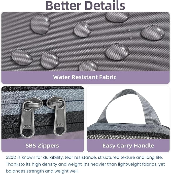 - PREMIUM UPGRADED 320D FABRIC:Smooth&Soft 320D Fabric Protects Your Clothes from Wrinkles and Stains.High Performance Feature Makes Sure this Packing Cubes can Bear High Density Wear and Tear during Traveling.Water-Repellent Feature Nicely Protect Your Clothes from Spill or Leaks.Easily Store Your Clothes and Protect Your Clothes from Stains and Wrinkles.