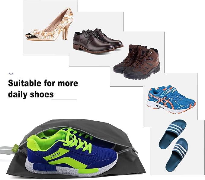 - Versatility Beyond Shoe Storage: These shoe bags for travel go beyond mere shoe storage – they're a versatile solution for maintaining order in your rooms and suitcases. Keep your shoes organized and clothes clean effortlessly. Besides serving as shoe bags, they can double as makeup bags, toiletry bags, travel laundry bags, organizers, or gym storage bags. Elevate your organization game, bringing joy to both your housework and daily life while maximizing your space.