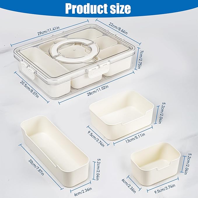 - Practical Design: Designed with one long grid, one large grid, and four small grids, each section of the serving tray includes a secure lid and handle for effortless access and safe transport of different snacks without flavor mixing.