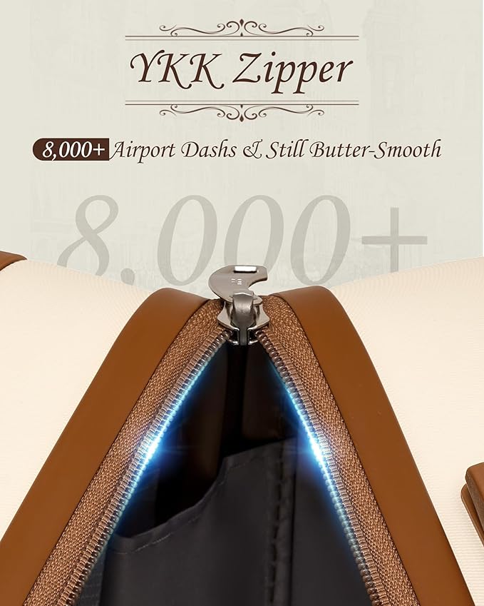 - 【Zip Effortless,Built to Last】Our ultra-smooth YKK zippers glide with buttery ease even when overpacked, letting you zip up quickly during hectic airport dashes—the ideal luggage set for women who value both style and durability. Tested for 8,000+ cycles (15+ years of weekly trips), they keep performing smoothly through every adventure.