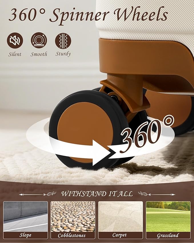 - 【Durable & Smooth 360° Wheels】From airport sprints to cobblestone alleys, these library-quiet wheels glide smoothly in all directions. Rigorously proven through 90cm single-wheel drop tests and 16km extended runway sprint trials, they maintain flawless stability with 20kg (44lbs) loads—perfect for dodging crowds at busy terminals or tackling uneven urban terrain.