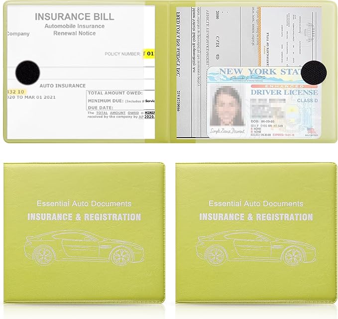 UYYE Car Registration and Insurance Card Holder, Vehicle Glove Box Car Organizer, Interior Car Accessories for Documents, Cards, License - 2 Pack