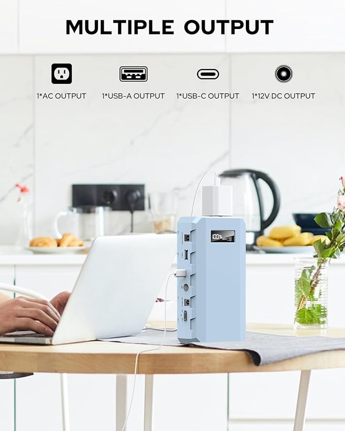 - 【Upgrade Multi-Output Ports】The sinkeu portable laptop charger is equipped with 1 USB-A & USB-C(5V/3A 9V/2A), 1*DC (9V~12.6V/10A Max), AC(110V/65W) output, which means this portable charger power bank can charge power multiple devices at the same time