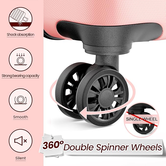 - Dual Spinner Wheel Design: The 4 360° silent dual spinner wheels easily change the direction of move without much effort, moving smoothly through crowded streets, train stations or airports, enhancing your travel experience.